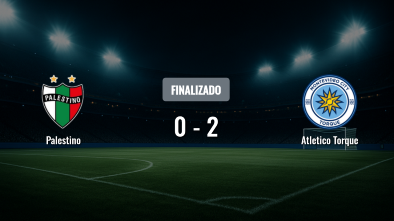Palestino 0-2 Atletico Torque. Goles de S. Rodriguez, S. Gallegos (e/c). CONMEBOL Sudamericana, 15 de abril de 2026.